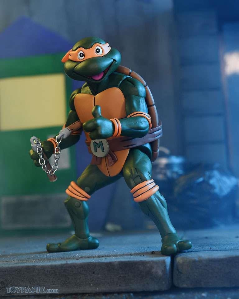 Based on the classic 1980s Teenage Mutant Ninja Turtles cartoon series! The party dude Michelangelo is getting the “Ultimate” treatment with this 7-inch scale action figure loaded with accessories. His included chef's hat and soft goods pizza apron pair perfectly with his granola & licorice pizza and other episode-specific accessories! Comes in all-new Pizza Club VHS style collectible packaging.