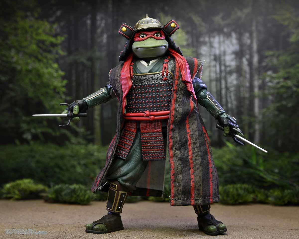 Complete your NECA TMNT movie trilogy collection with these incredible action figure 2-packs from Teenage Mutant Ninja Turtles III! Get Donatello and Raphael in their samurai attire as totally radical 7-inch scale action figures. The figures come with interchangeable hands, 2 oni masks, 2 sais, bo staff, and a Time Scepter. Window box packaging.