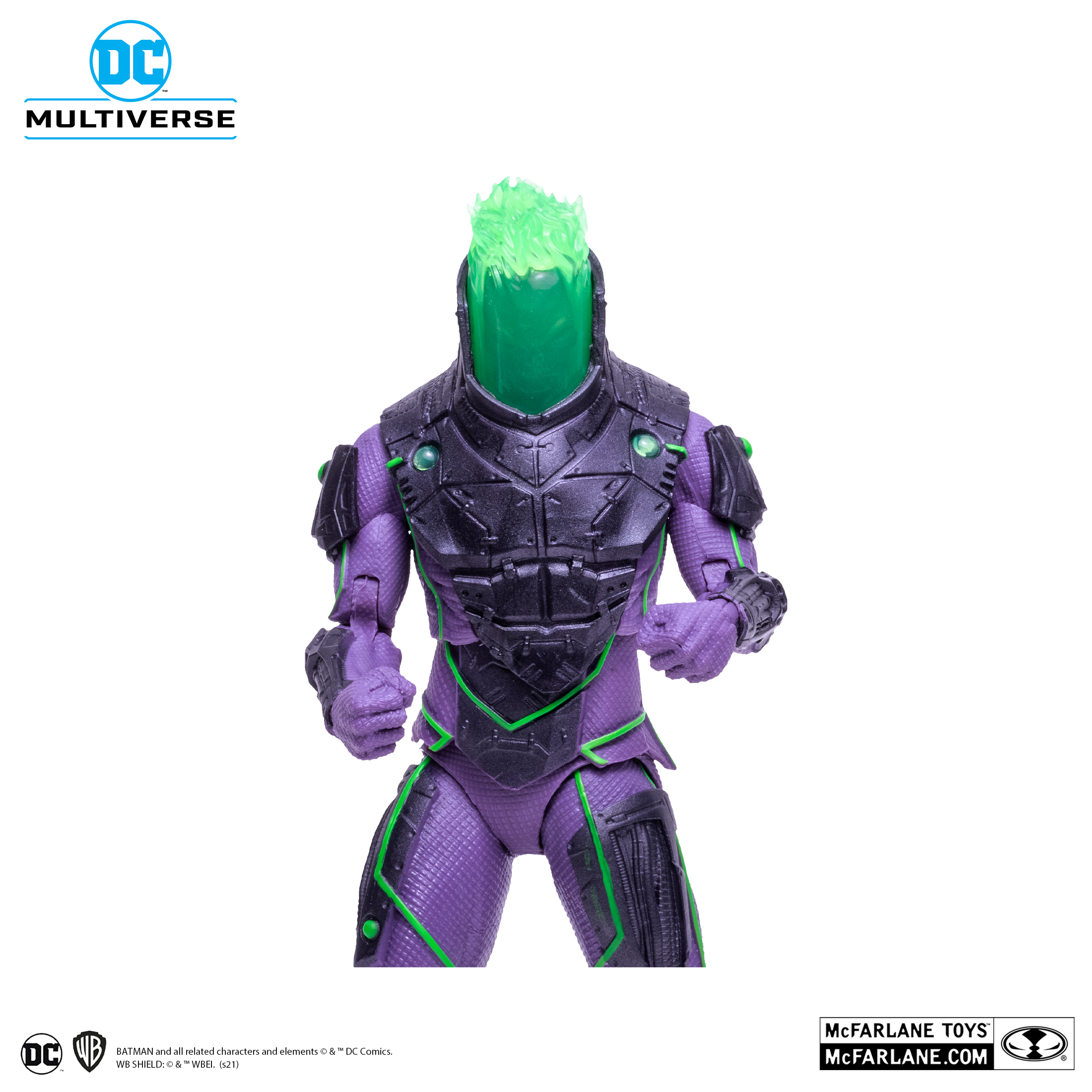 -Blight figure is featured with a flaming helmet based on his look when he is suffering a Meltdown in the DC Comics Batman Beyond