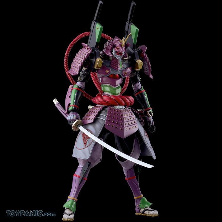 The iconic Evangelion Type-01 has been redesigned into a samurai armor variant action figure by Takashi Okazaki, the illustrator known for “Afro Samurai”!